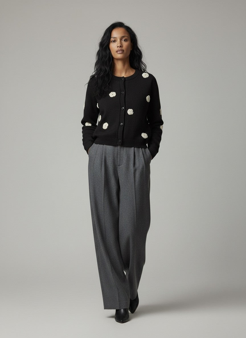 Le cardigan FLORA incarne la douceur et le raffinement dans un style à la fois féminin et moderne.
