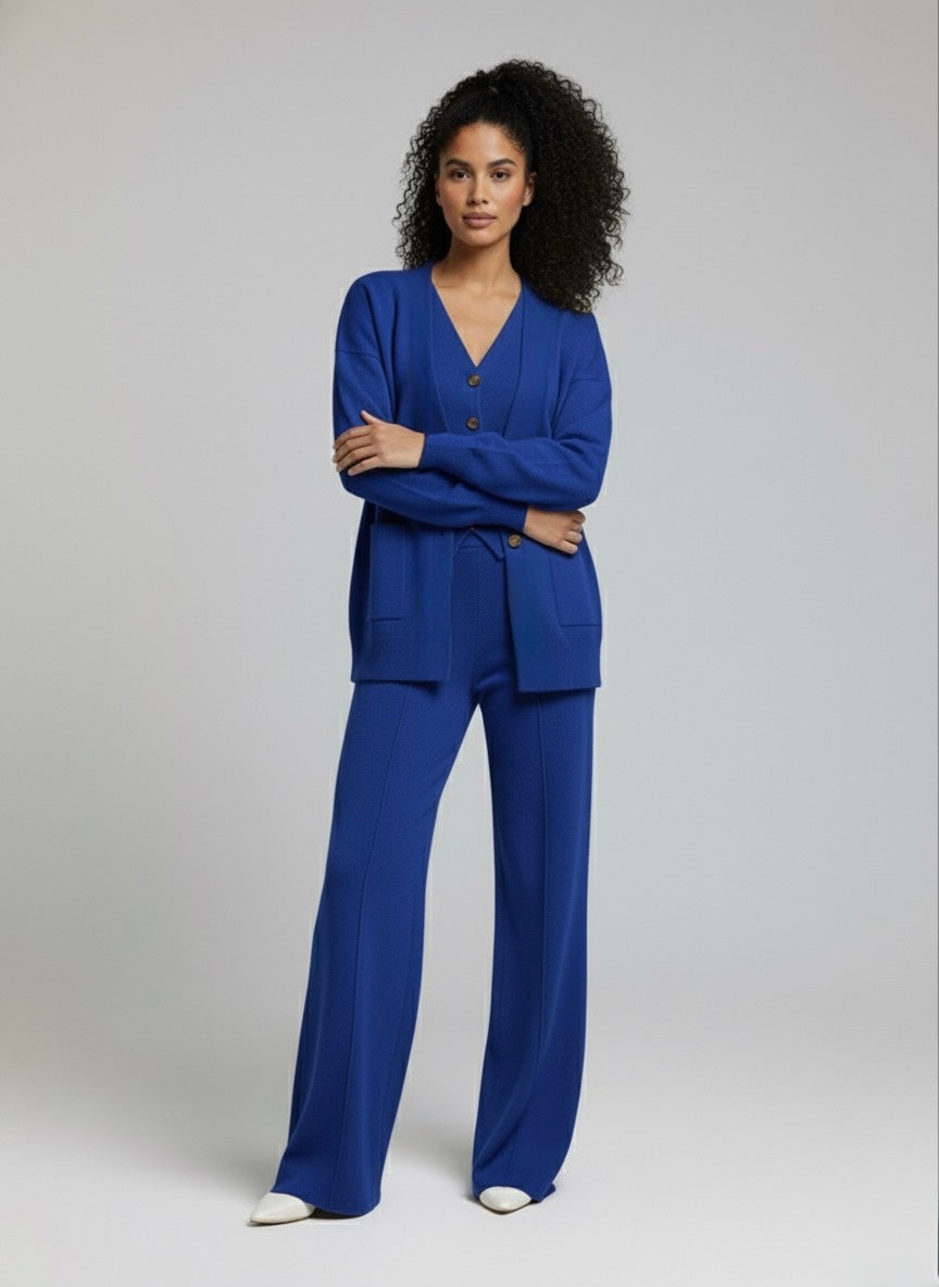 Composé de trois pièces assorties, il allie confort et allure sophistiquée :